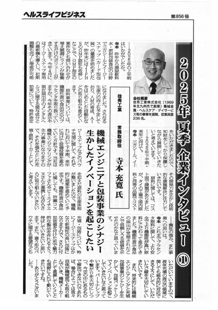 2025年上半期の当社の活動について、弊社常務取締役の寺本へのインタビュー記事が掲載されました。
